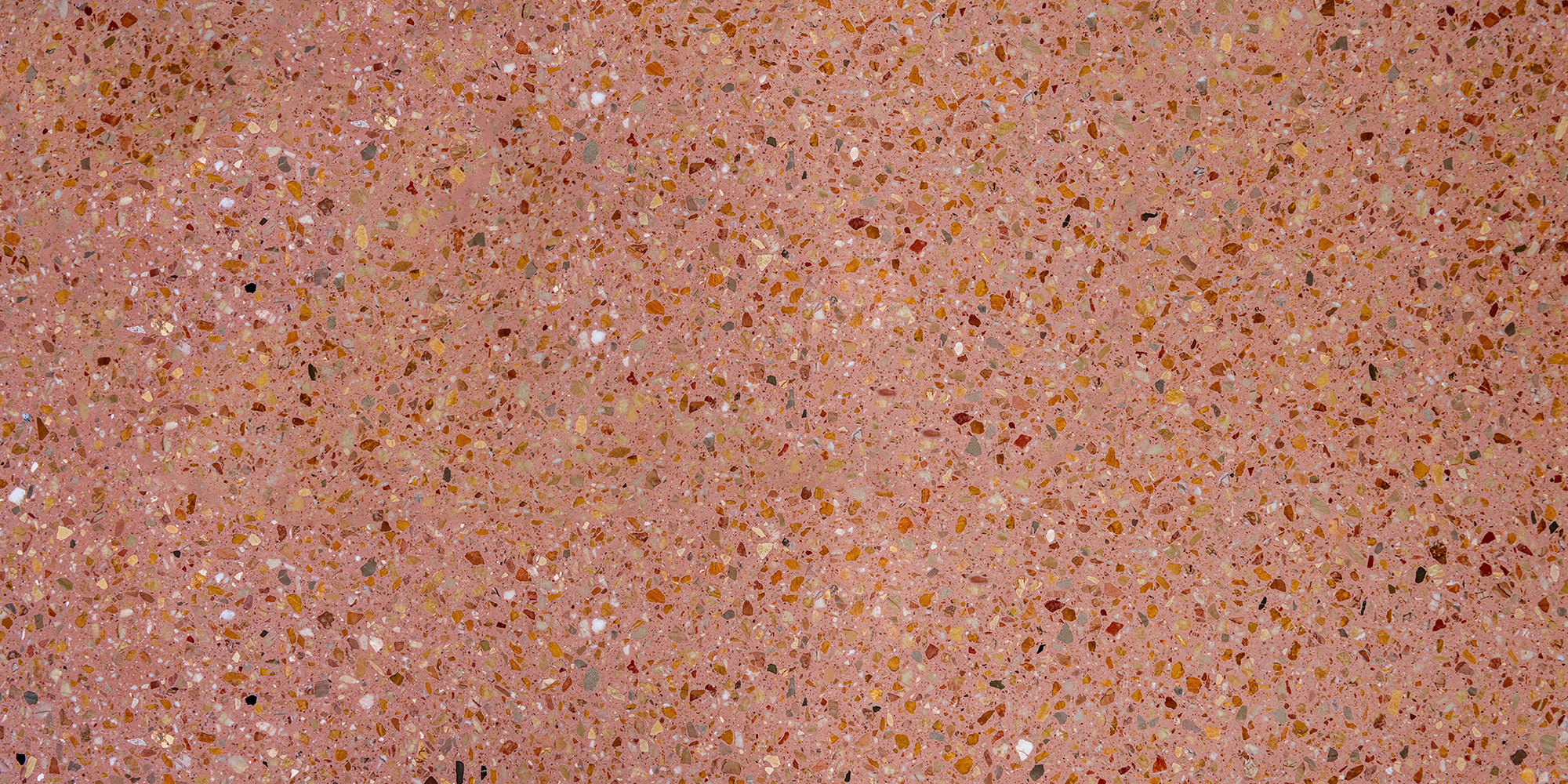 An almond‑hued base flecked with ivory, cream, olive and blush aggregates, honed to a velvety finish that accentuates its subtly warm and sophisticated terrazzo pattern.