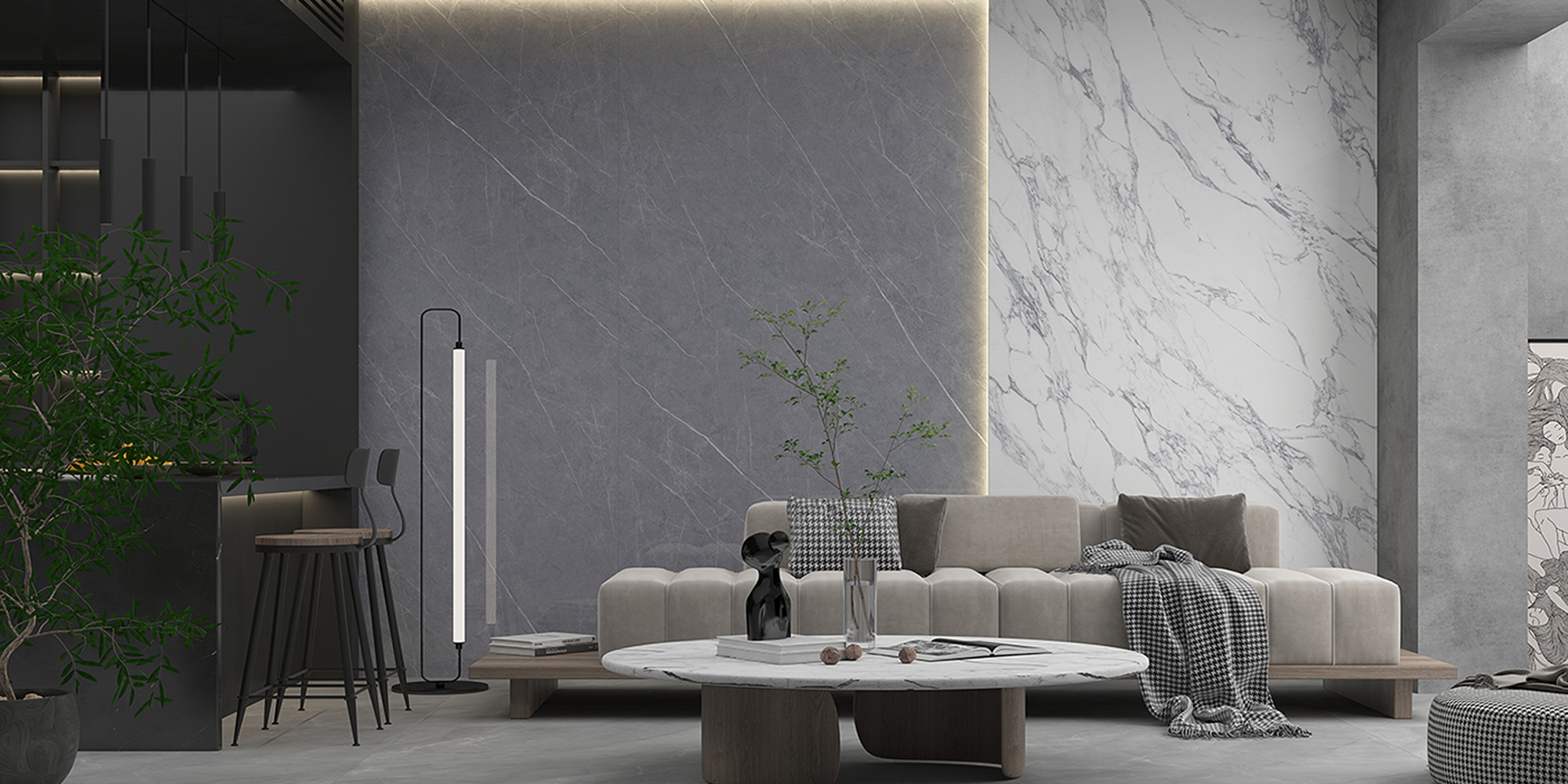 - Rich deep grey base elevated by fine white veining for a sophisticated and timeless aesthetic