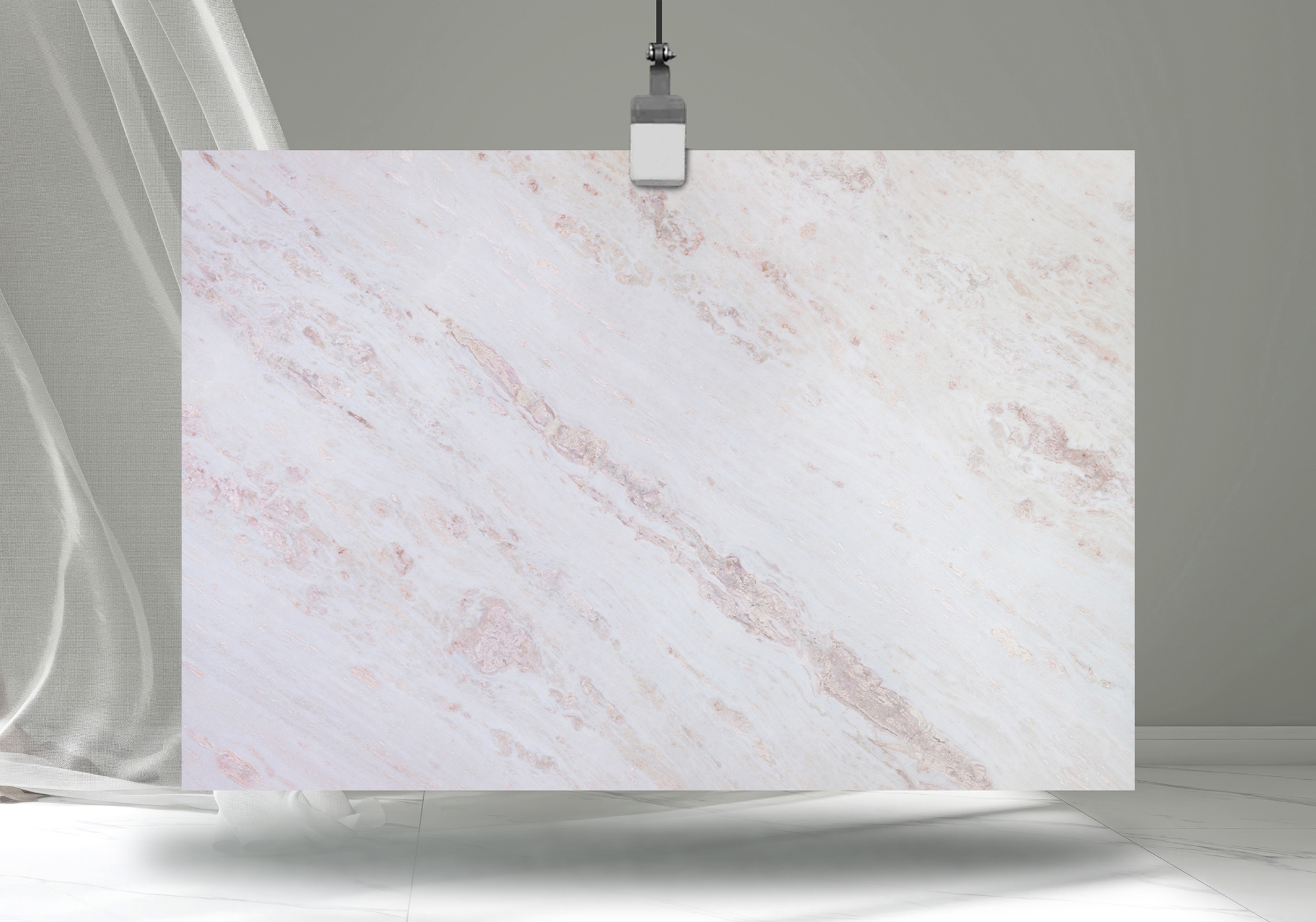 - Elegant Namibian marble with a soft white base highlighted by delicate blush and rose-toned veining