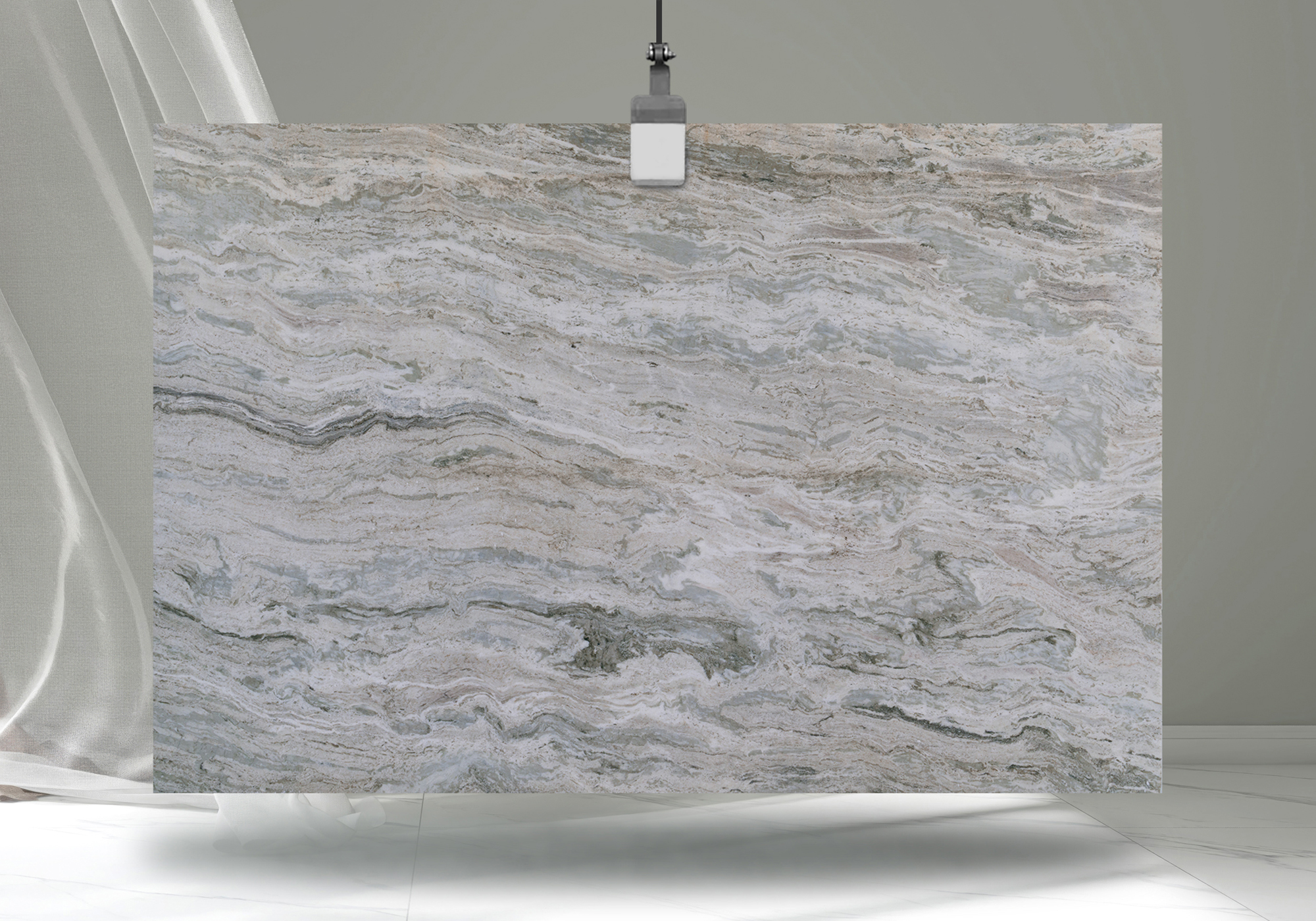 Unveil the ethereal beauty of Fantasy White Quartzite, where sweeping layers of soft blue-grey and ivory converge to mimic the rhythmic motion of ocean waves. This stone creates immediate depth and dimension, offering a dramatic visual anchor that remains sophisticated rather than overpowering.