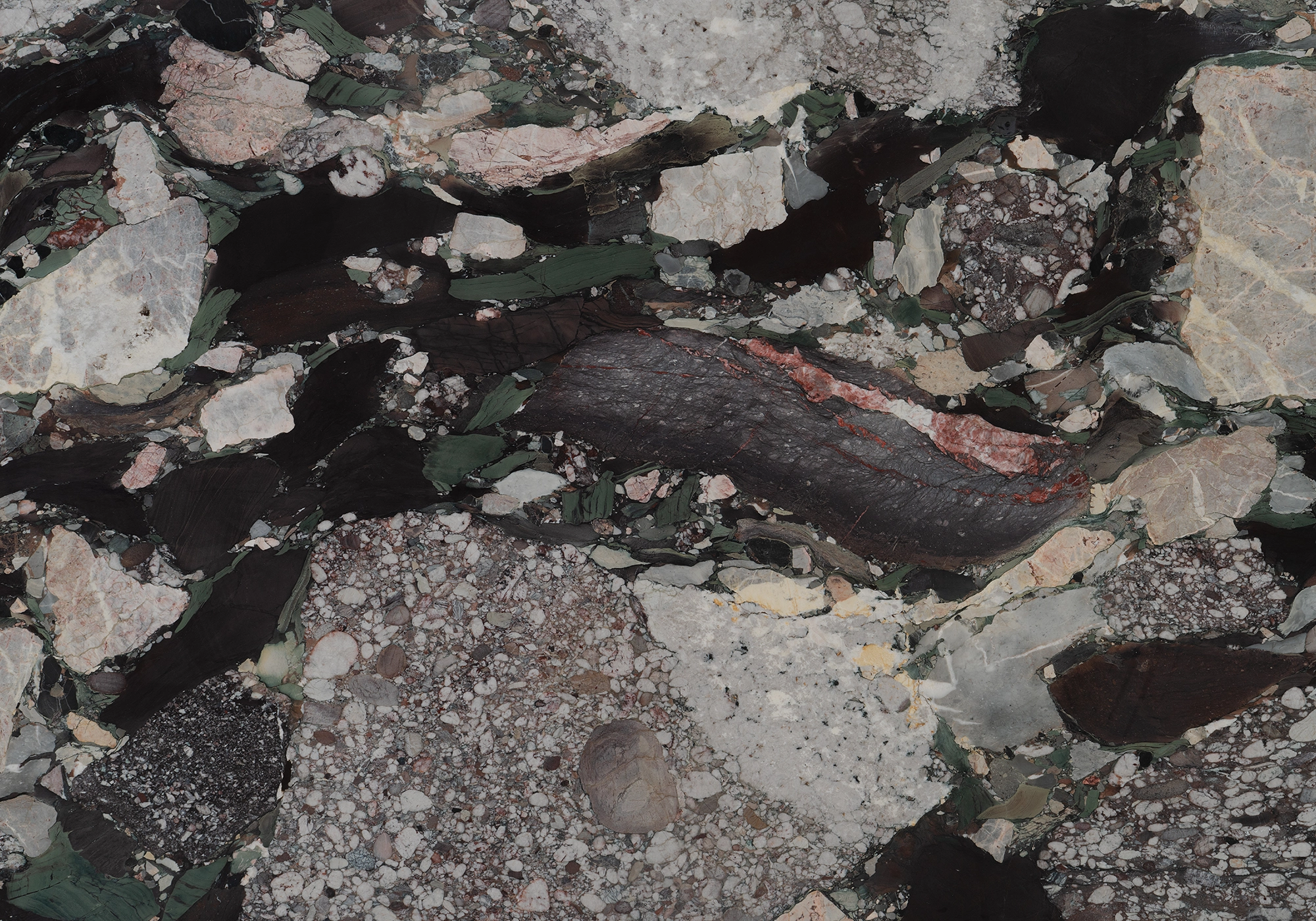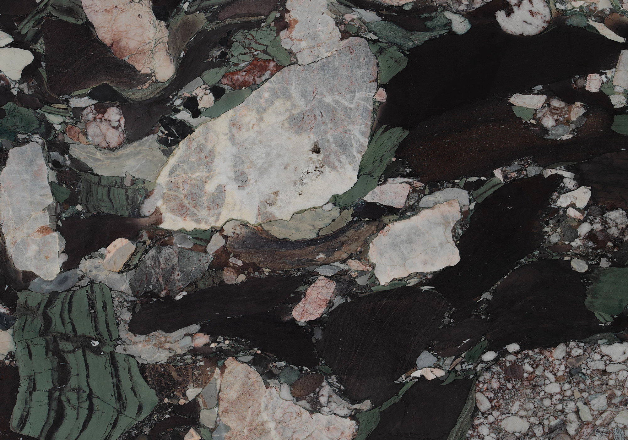 Sourced from the Pyrenees in France, Four Seasons is a richly expressive natural marble defined by its extraordinary palette—lush greens, deep purples, and delicate transitions from crisp white to soft blush. A striking composition, it reflects the raw complexity and artistry inherent in natural stone.