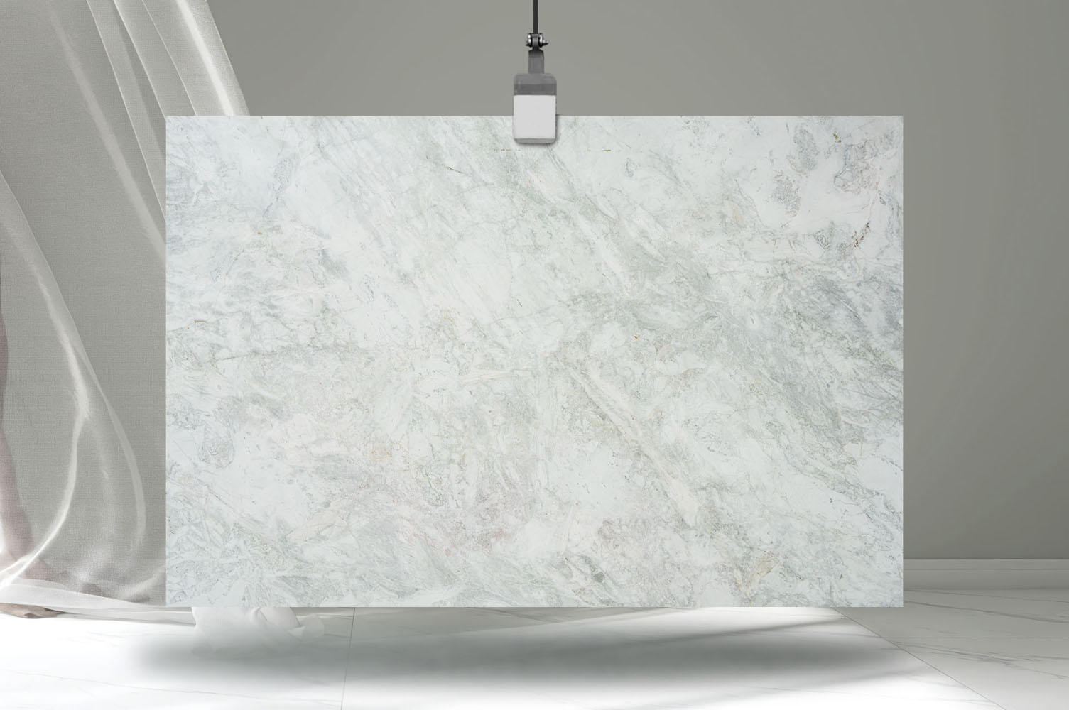 - Elegant soft white marble with delicate silvery-grey veining for a calm and refined visual character