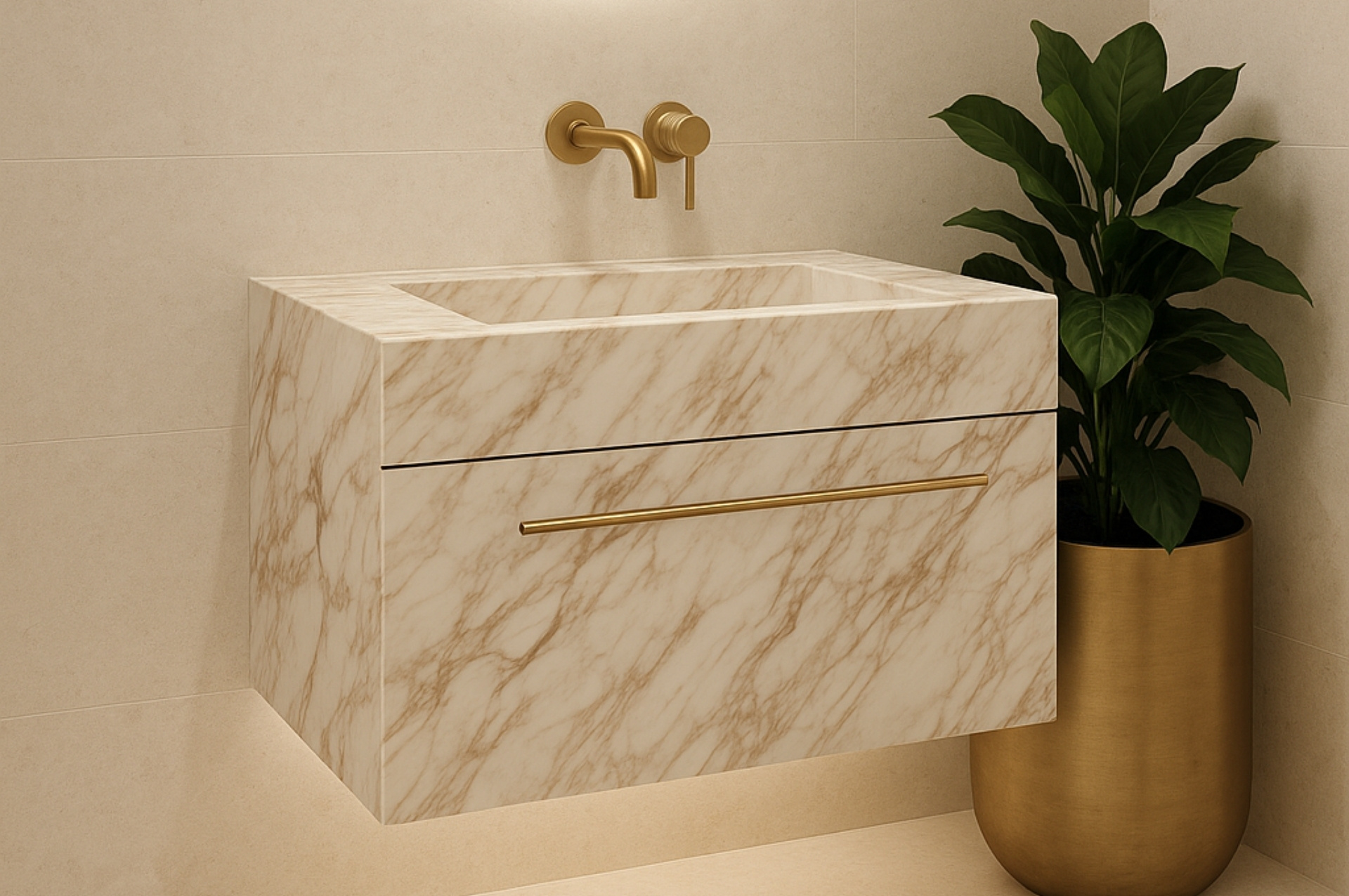 New Calacatta Gold is a luxurious marble featuring a creamy white base enhanced by elegant golden and taupe veining. With a honed finish, it brings warmth and sophistication—perfect for statement benchtops, feature walls, and timeless architectural design.