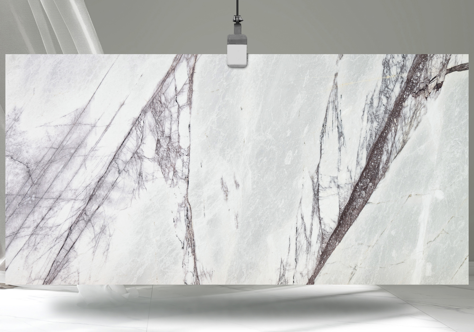 - Sophisticated Italian marble with a cool white base enriched by striking purple veining for bold visual impact