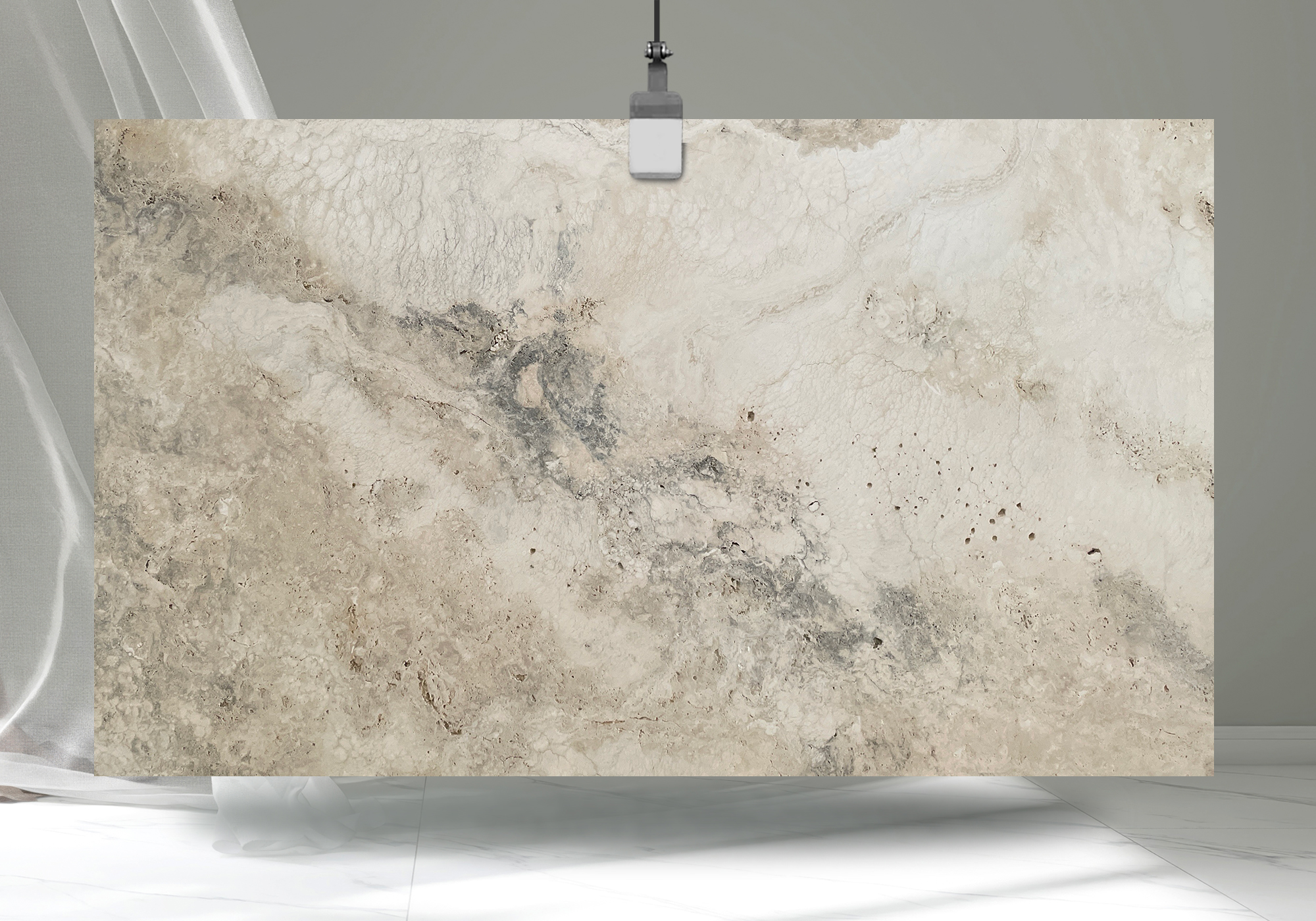 Oris Travertine is a premium natural stone that epitomizes the timeless beauty of Italian quarries. Unlike traditional linear-veined travertines, this variety features a cross-cut aesthetic that reveals a rich, swirling tapestry of organic textures and soft tonal transitions.