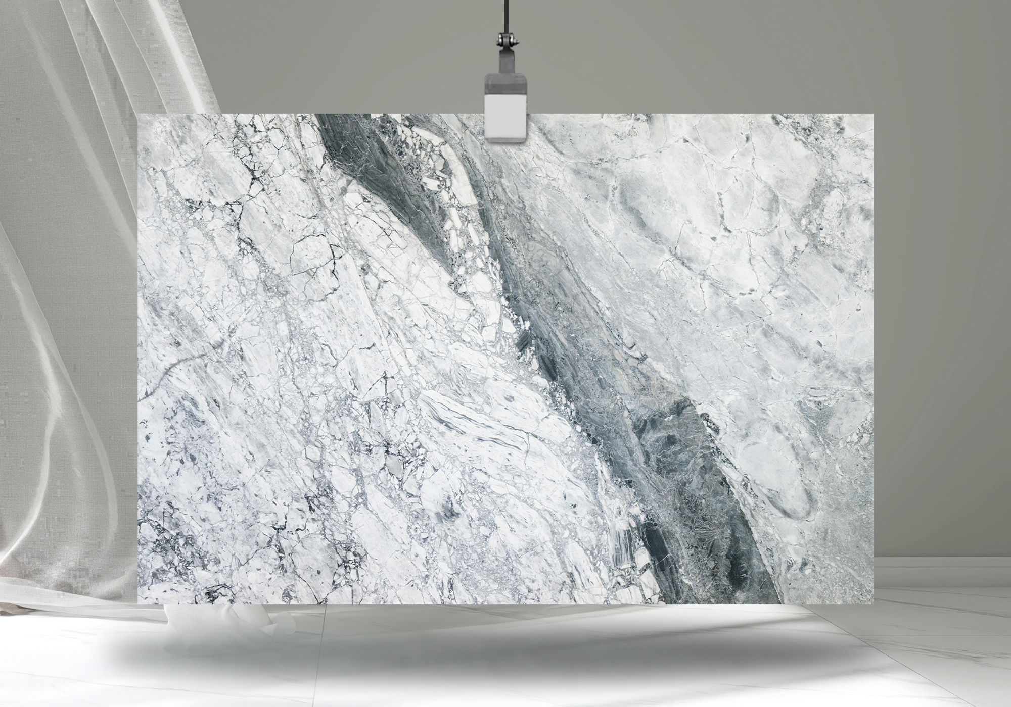 - Bold Brazilian dolomite featuring a striking blend of light grey, white and darker contrasting veining