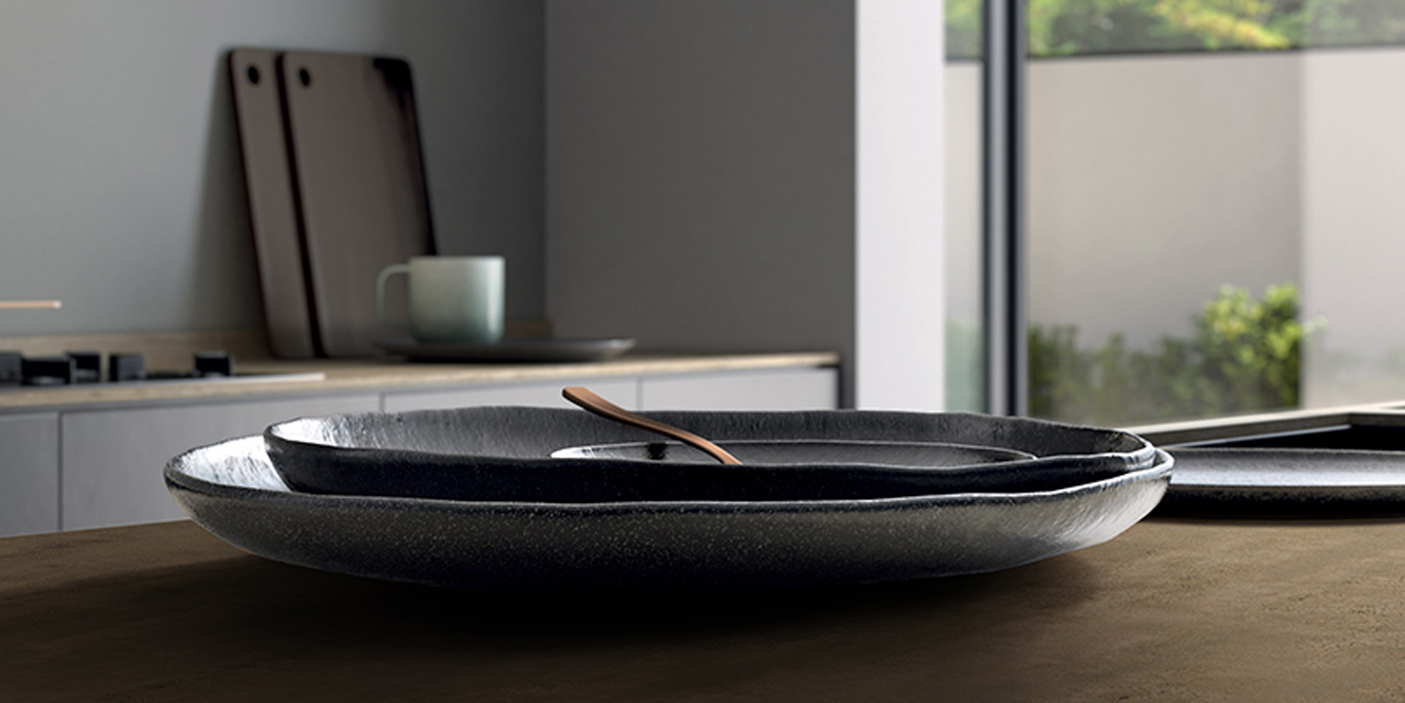 Discover the modern, urban style of MAMO Vicentina, a sophisticated sintered stone slab with a deep, earthy brown tone and a subtle, industrial-inspired texture. Its minimalist yet powerful design creates a bold and contemporary foundation for any space.